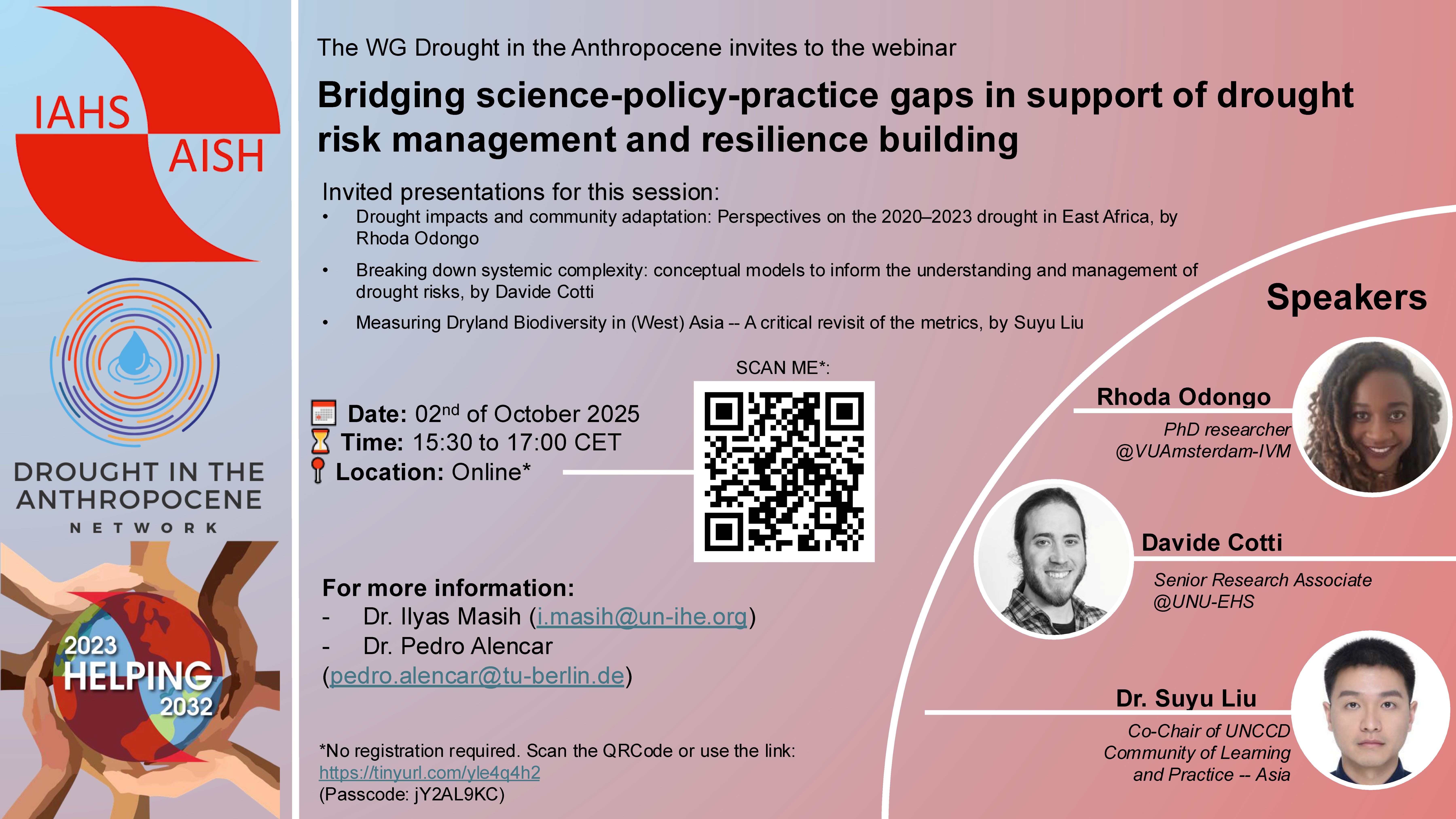 You are warmly invited to this webinar organized by IAHS - International Association of Hydrological Sciences working group on Drought in the Anthropocene Network (DitA).