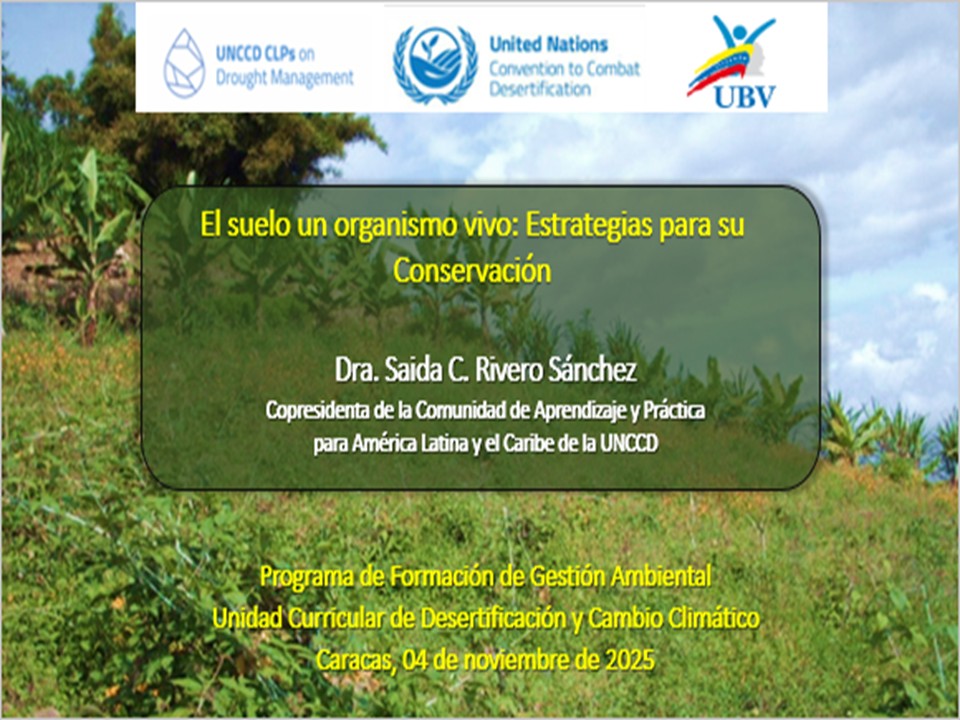 Estoy muy complacida de haber contribuido, el pasado 04 de noviembre de 2025, en la Universidad Bolivariana de Venezuela, en el contexto de la Unidad Curricular de Desertificación y Cambio Climático, brindando la ponencia El suelo un organismo vivo: Estrategias para su Conservación. Esto, apoyando al Dr. Josue Lorca, quien esta al frente a la Unidad, dando importantes debates formativos para los estudiantes, donde fomenta el pensamiento crítico que moldea futuros líderes y agentes de cambio.